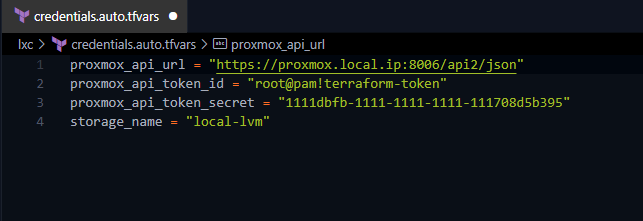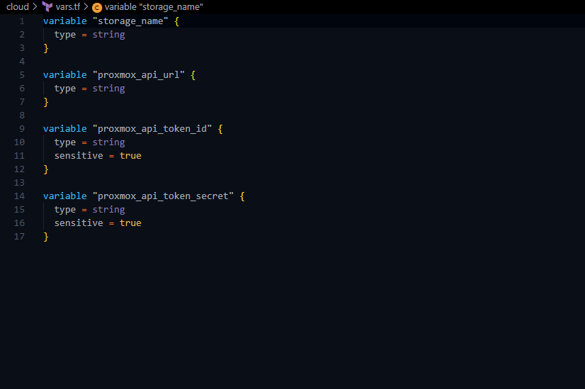 proxmox_api_url— URL API Proxmox.proxmox_api_token_id— ID токена.proxmox_api_token_secret— секрет токена.storage_name— имя хранилища для диска VM.
